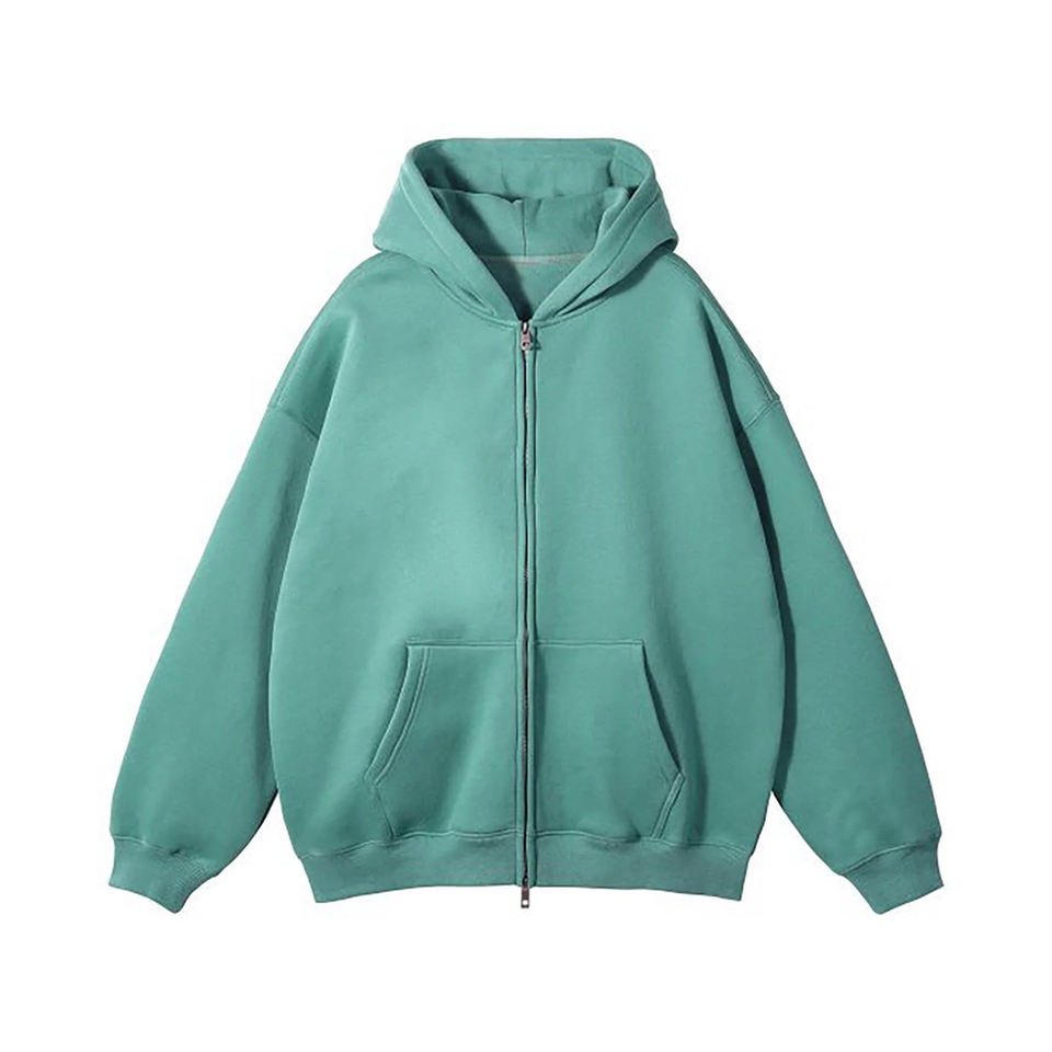 เสื้อฮู้ดดี้บุขนหนานุ่มสำหรับผู้ชาย ผ้าฝ้าย 100% ทรงหลวม ไหล่ตก ซิปหน้า คุณภาพหรู ไม่หดตัว ปักลาย สำหรับฤดูหนาว