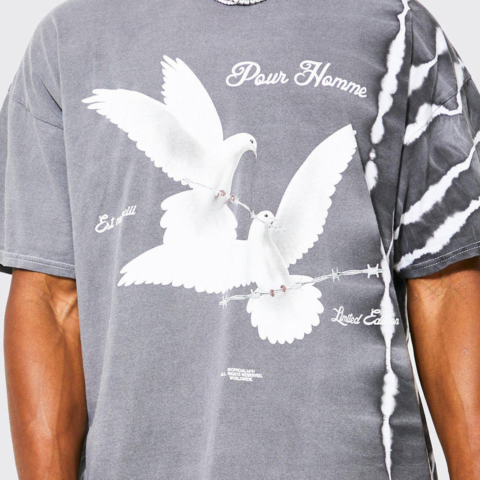 เสื้อยืดผู้ชาย 100% ผ้าฝ้าย เป็นมิตรกับสิ่งแวดล้อม ทรงโอเวอร์ไซส์ พิมพ์ลายสกรีน ไหล่ตก สไตล์สตรีทแวร์ ผ้าหนา 220 กรัม