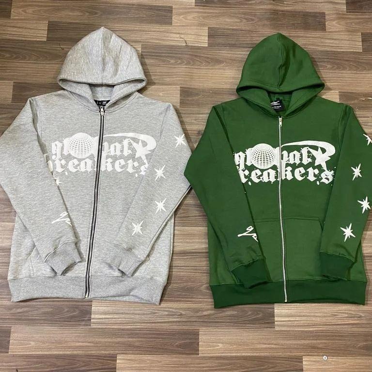 เสื้อมีฮู้ดแบบซิปสำหรับผู้ชายผ้าคอตตอน100% เสื้อมีฮู้ดระบายอากาศได้ดีขนแกะสีพื้นพัฟ3D ออกแบบโลโก้ได้เองสำหรับผู้ชายผู้หญิง