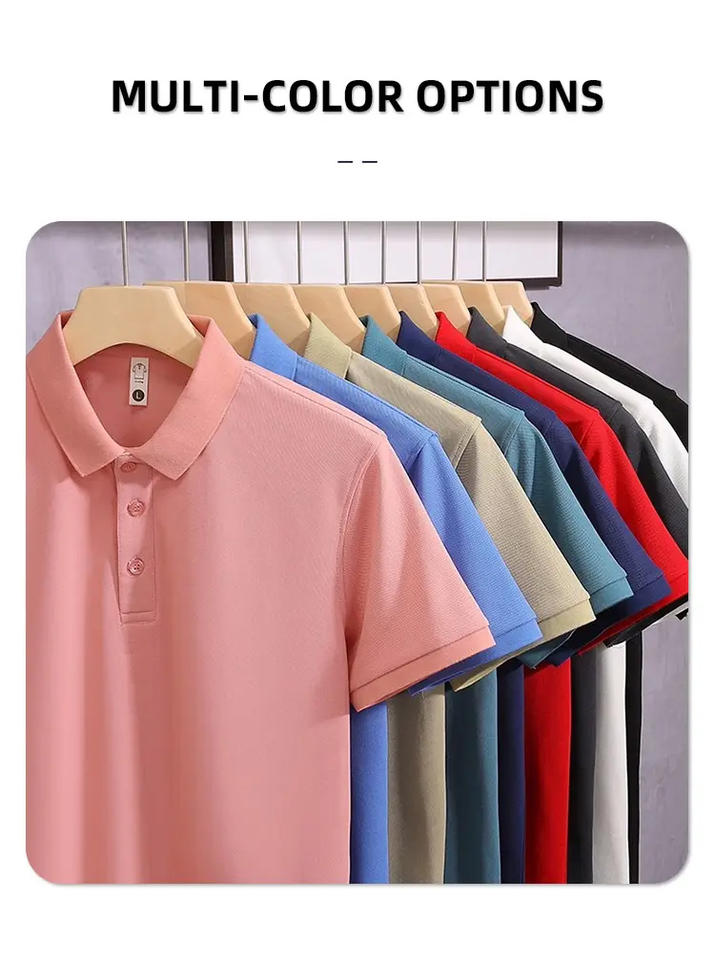 เสื้อยืดกอล์ฟผู้ชาย ผ้าฝ้าย 100% คุณภาพสูง ถักทออย่างดี คอปกสั้น ป้องกันการหดตัว ป้องกันการยับ ผ้าเนื้อแน่นแข็งแรง แขนครึ่งแขน