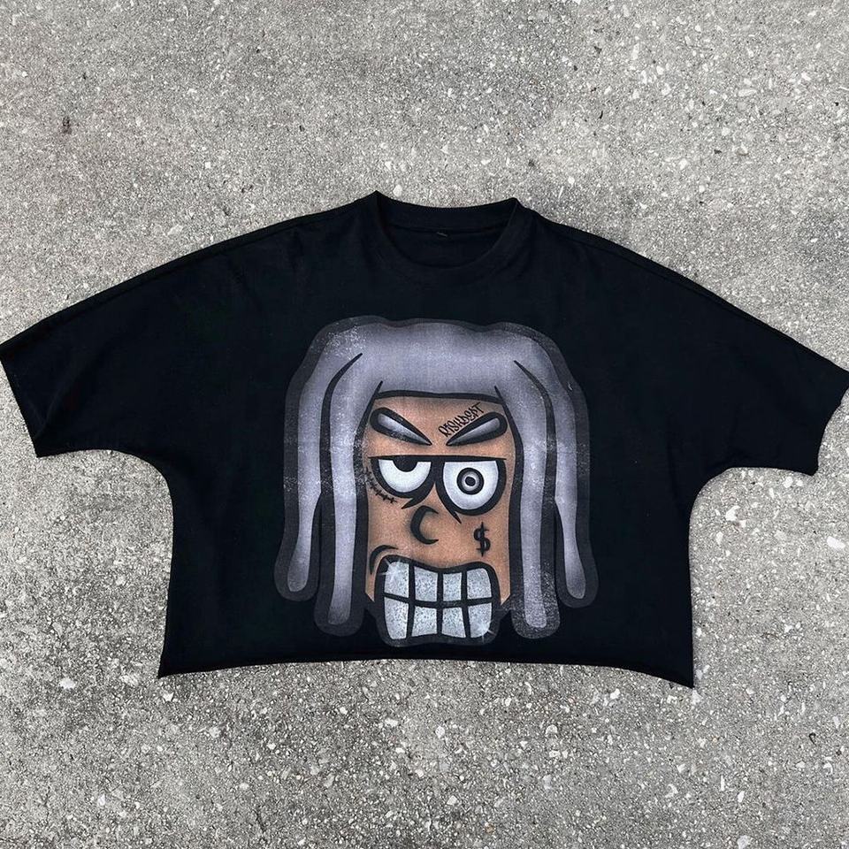 เสื้อยืดฮิปฮอปผ้าฝ้าย100% สำหรับผู้ชายทรงหลวม DTG mock ไหล่บ็อกซี่ไหล่สั้นถักลายตัวอักษรยาว