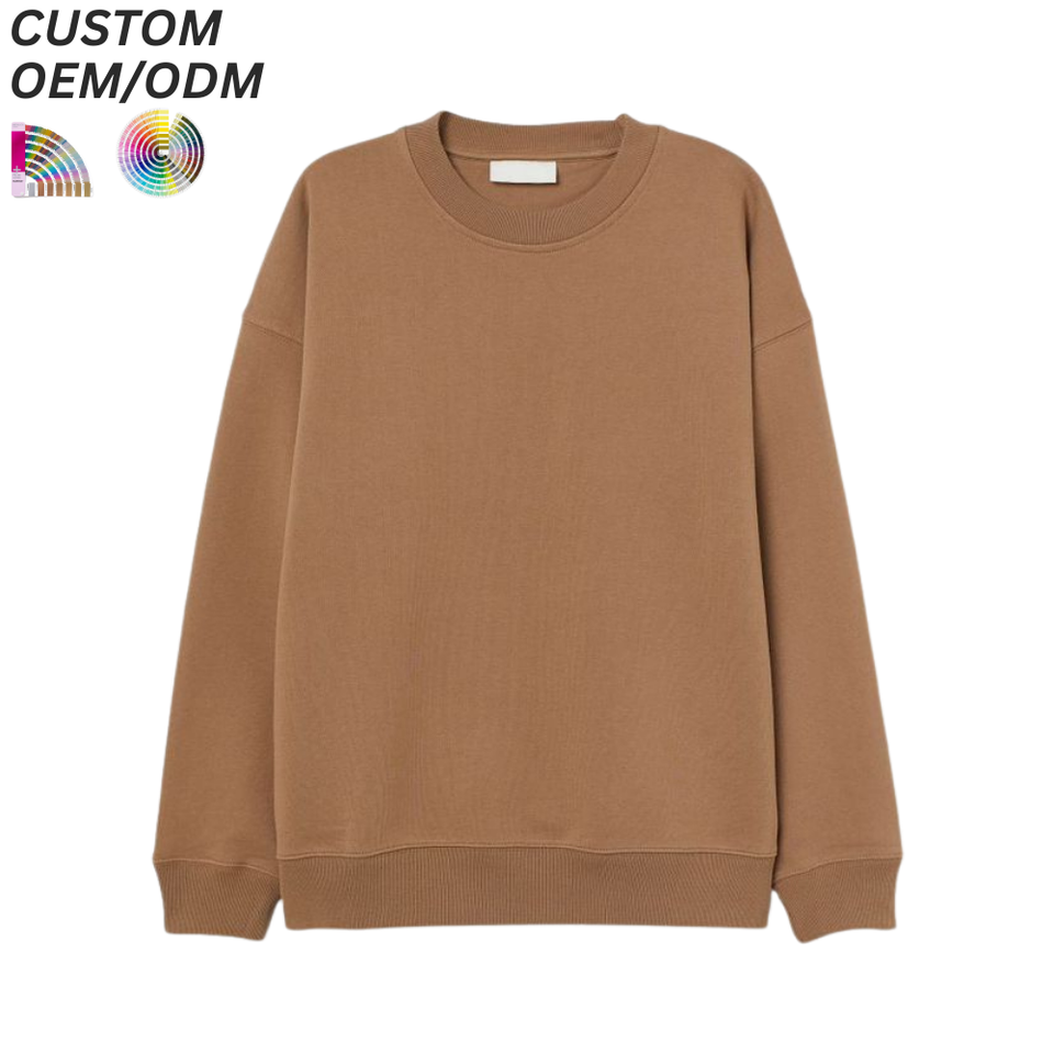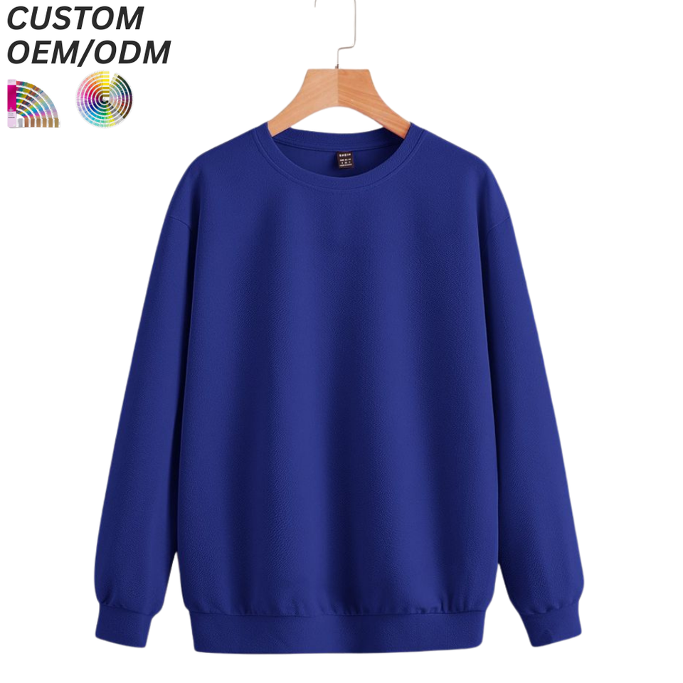 เสื้อสเวตเชิ้ตผู้ชาย ผ้าฝ้าย/โพลีเอสเตอร์/สแปนเด็กซ์ 100% ทรงพอดีตัว คอโอ ทรงปกติ สีพื้น ผ่านการซักแล้ว รับทำโลโก้ตามสั่ง OEM/ODM