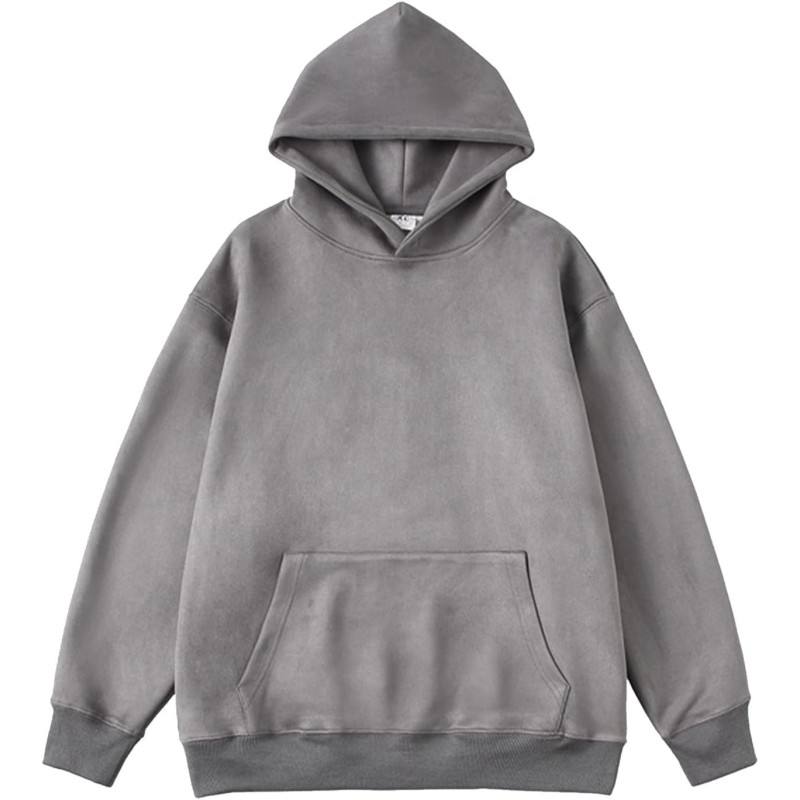 เสื้อมีฮู้ดทรงหลวมโอเวอร์ไซส์ผ้าคอตตอนผ้าขนแกะเนื้อนุ่มปักสไตล์วินเทจแบบสวมหัวสีพื้นสำหรับ100%