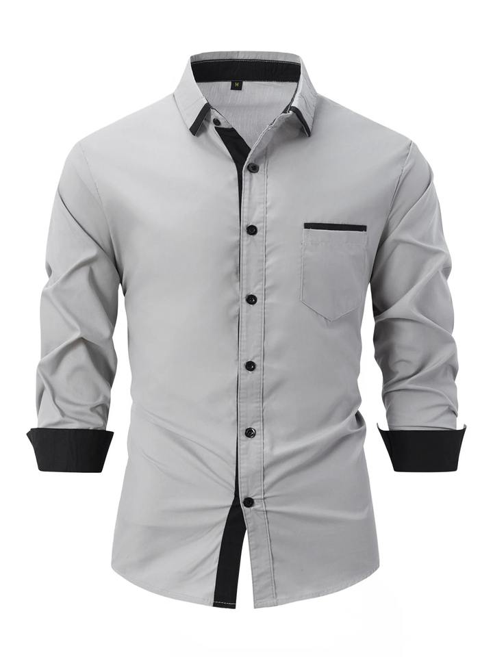 เสื้อเชิ้ตแขนยาวสำหรับนักธุรกิจชาย, ผ้าฝ้าย100% ฤดูใบไม้ผลิและฤดูใบไม้ร่วงระบายอากาศได้ดีดีไซน์แบบประกบสีทึบใส่สบาย