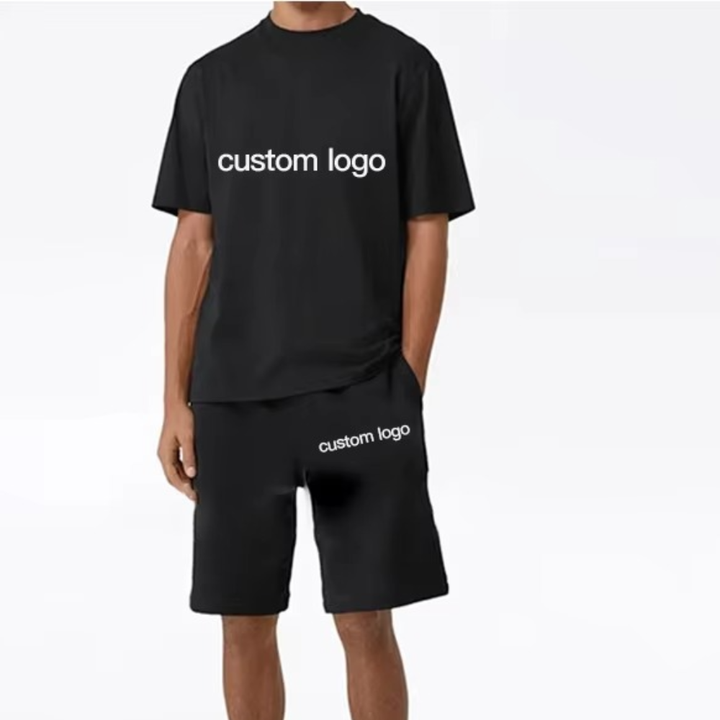 ชุดเสื้อยืดผ้าฝ้าย100% 2ชิ้นสำหรับผู้ชายชุดสั้นเสื้อยืดสำหรับผู้ชายชุดสั้น2ชิ้นโลโก้กราฟิกแบบกำหนดเอง