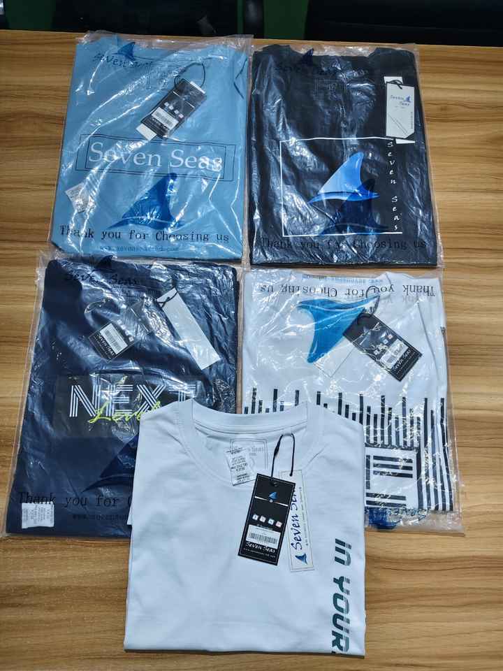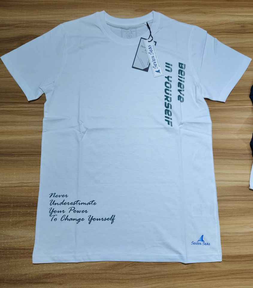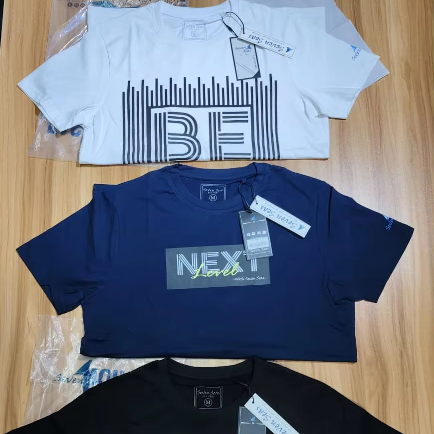 เสื้อยืดคอกลมแขนสั้นผู้ชาย ผ้าฝ้ายถัก 100% ย้อมเส้นด้าย ซักแล้ว แห้งเร็ว ระบายอากาศดี สวมใส่สบาย