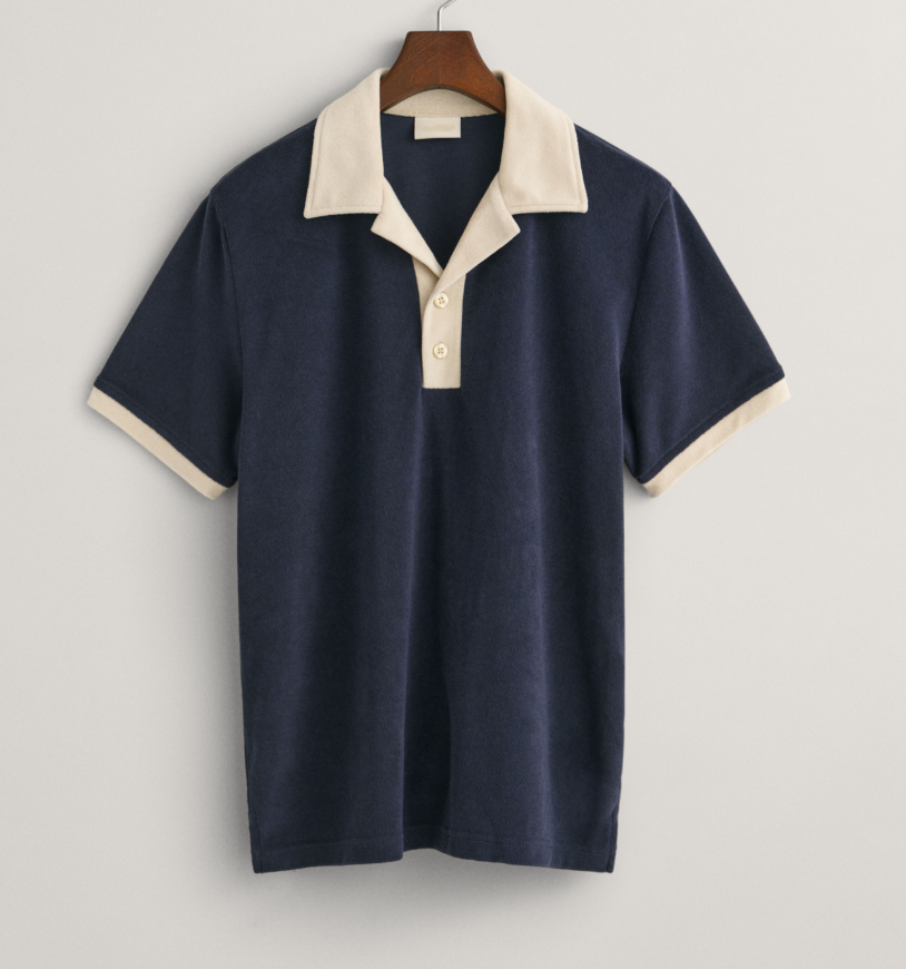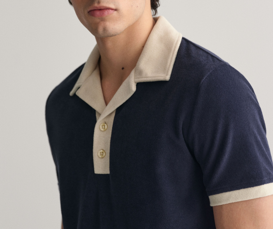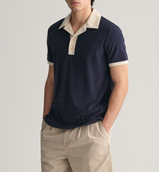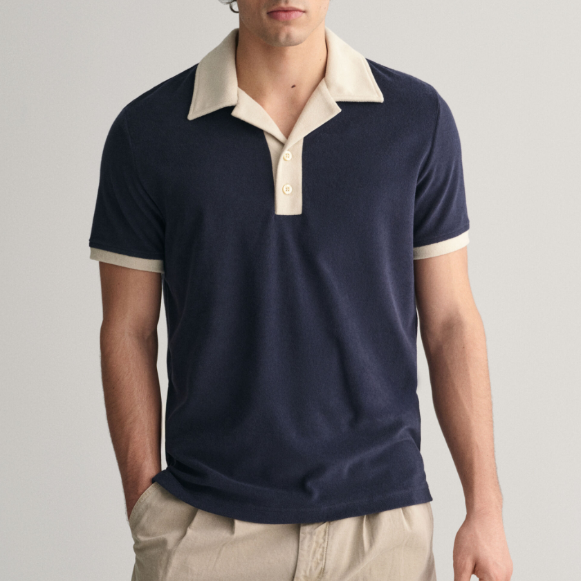 ผ้าขนหนูสำหรับผู้ชายทำจากผ้าฝ้ายเทอร์รี่สำหรับเสื้อโปโลมีกระดุมด้านหน้าสีตัดกันระบายอากาศได้ปักลาย