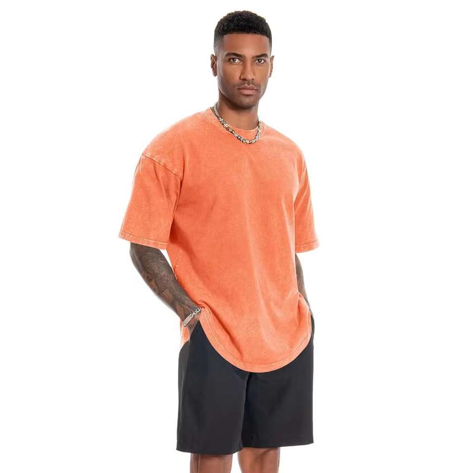 เสื้อยืดผู้ชายผ้าฝ้าย 100% ทรงวินเทจ ซักแล้ว น้ำหนัก 250 กรัม เสื้อยืดทรงหลวมโอเวอร์ไซส์ ซักย้อมสีแบบแอซิดวอช เสื้อยืดสั่งทำพิเศษ