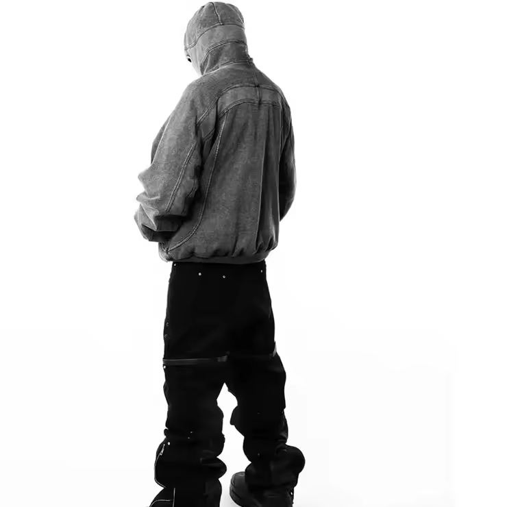 เสื้อฮู้ดเปิดไหล่สำหรับผู้ชายผ้าฟลีซหนาฟอกสีมีซิปเนื้อผ้าโอเวอร์ไซส์ผ้าคอตตอน100% ฤดูหนาวออกแบบได้ตามต้องการ