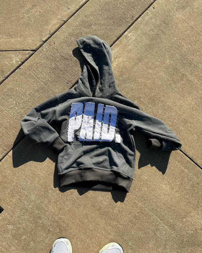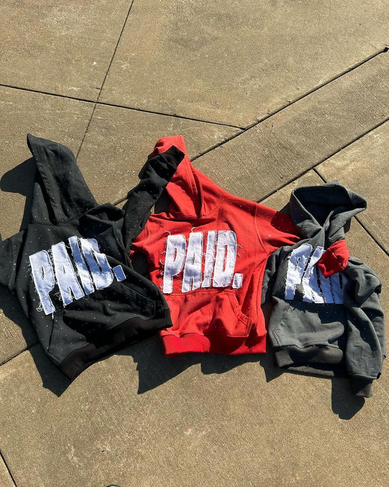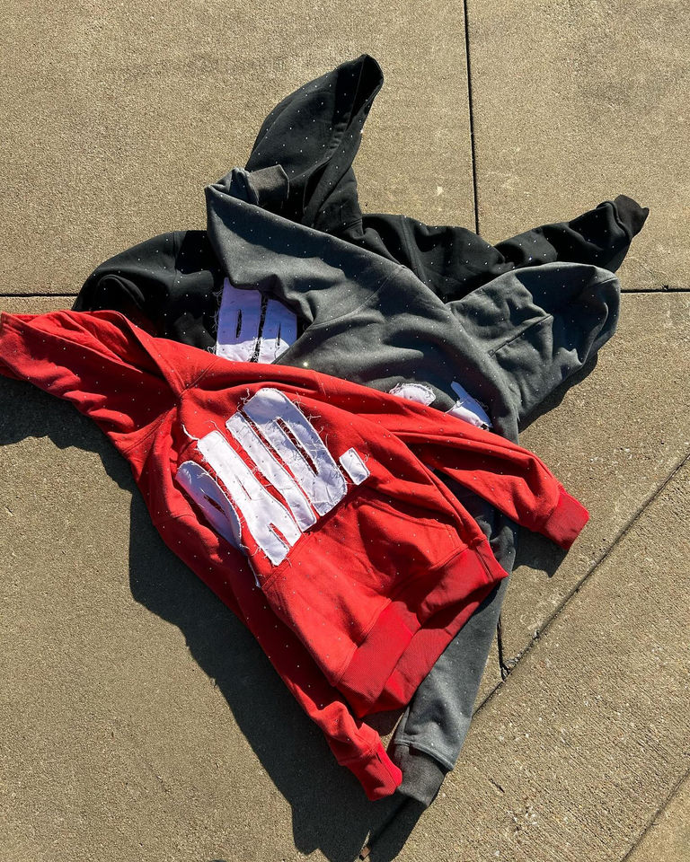 เสื้อฮู้ดผู้ชายผ้าฝ้าย 100% แบบซิป ปักลายคริสตัล สตรีทแวร์ ย้อมสีพื้น ทรงโอเวอร์ไซส์ ผ้าถัก กันน้ำ