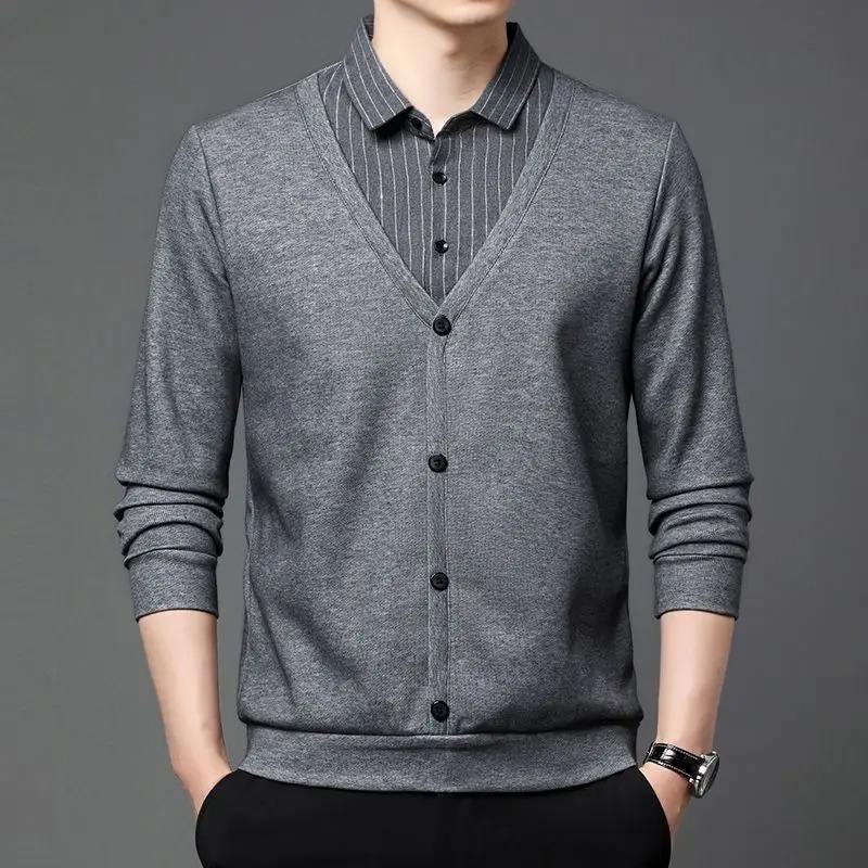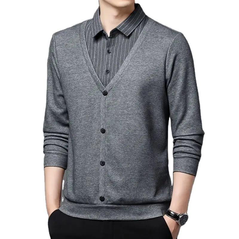 เสื้อโปโลลายทางผ้าขนแกะแฟชั่นสำหรับผู้ชาย, เสื้อผ้าแนวสตรีทให้ความอบอุ่นสำหรับฤดูใบไม้ผลิฤดูใบไม้ร่วงและ100%