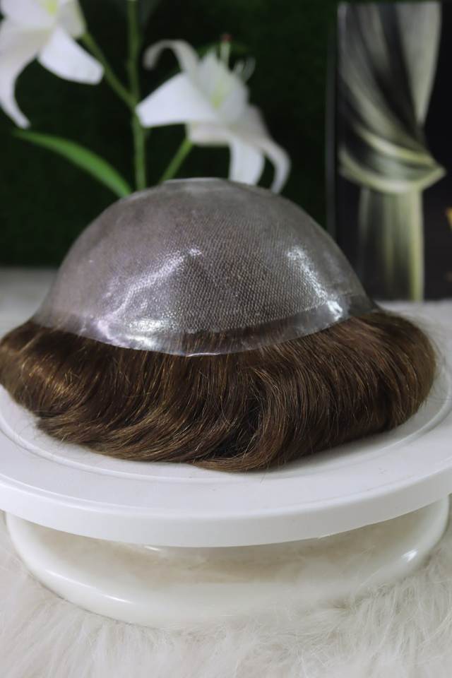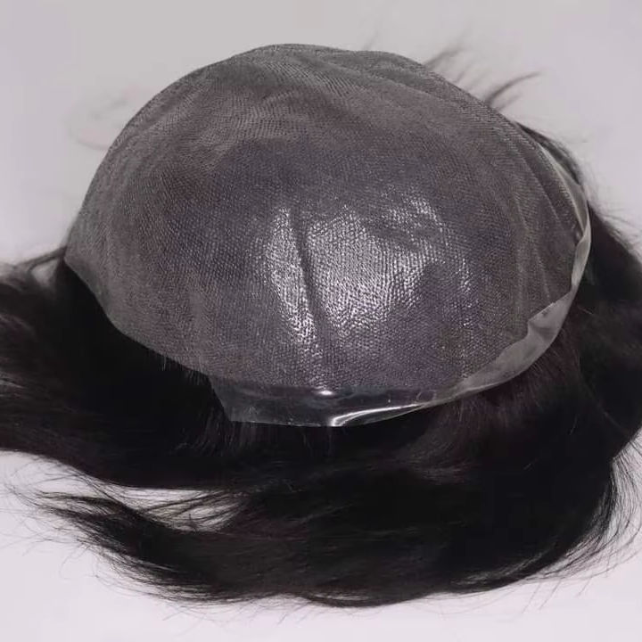 วิกผมมนุษย์100% สำหรับผู้ชายวิธีการแก้ปัญหาการปิดฐานไหมด้านเดียวสำหรับศีรษะล้านแบบมัดด้วยมือ