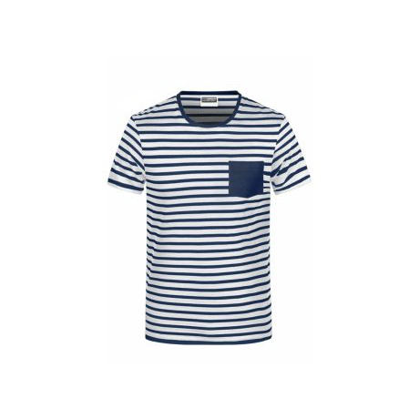Men's 100% Organic Cotton T-Shirt Striped Design Maritime for Look Chest Pocket 200 Grams Fabric Weight Mercerized Cotton Compre