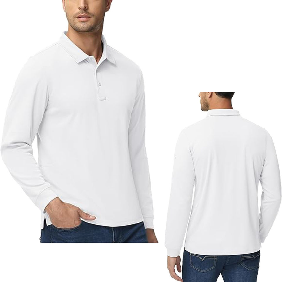 เสื้อโปโลแขนยาวผู้ชาย โพลีเอสเตอร์ 100% ระบายอากาศ แห้งเร็ว เหมาะสำหรับกอล์ฟ คุณสมบัติกันยับ ลายเรียบ