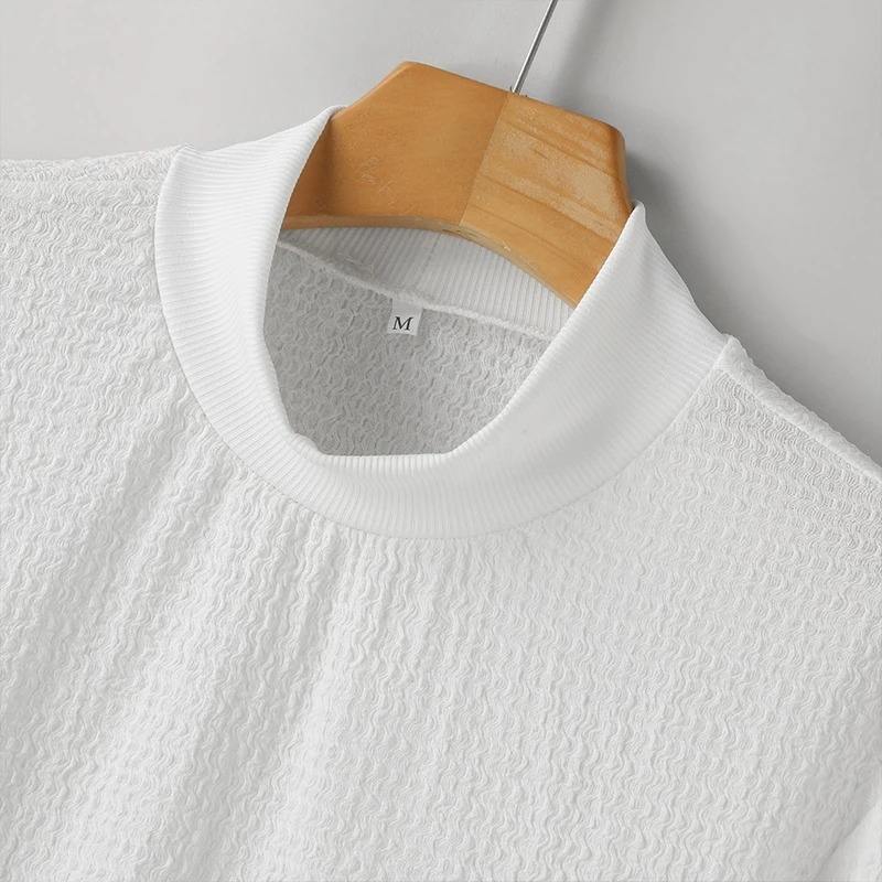 เสื้อยืดผู้ชาย แขนยาว คอเต่า ผ้าโพลีเอสเตอร์ 100% คุณภาพดี สไตล์ลำลอง ถักทออย่างดี สีพื้น เรียบง่าย พร้อมสกรีนลาย