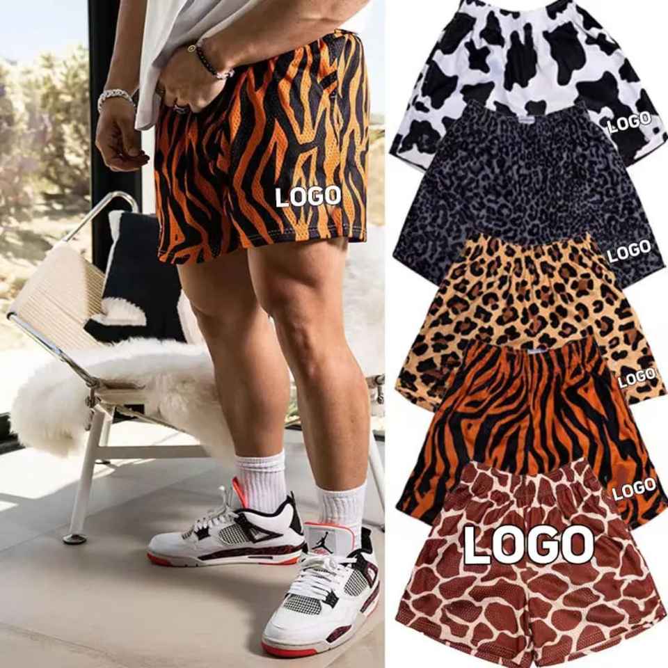 กางเกงขาสั้นผู้ชายผ้าตาข่ายโพลีเอสเตอร์ 100% พร้อมขอบเอวยืดหยุ่นสวมใส่สบาย พิมพ์ลายกราฟิกแบบซับลิเมชั่น สไตล์สตรีทสุดเท่