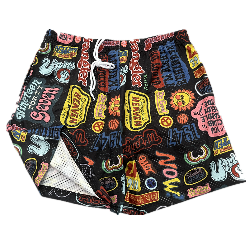 เสื้อยืดผ้าโพลีเอสเตอร์100% สำหรับผู้ชายกางเกงขาสั้นผ้าตาข่ายแนวสตรีทสวมใส่แนวสตรีทแบบกำหนดเองได้สองชั้นดีไซน์เนอร์ซับใน
