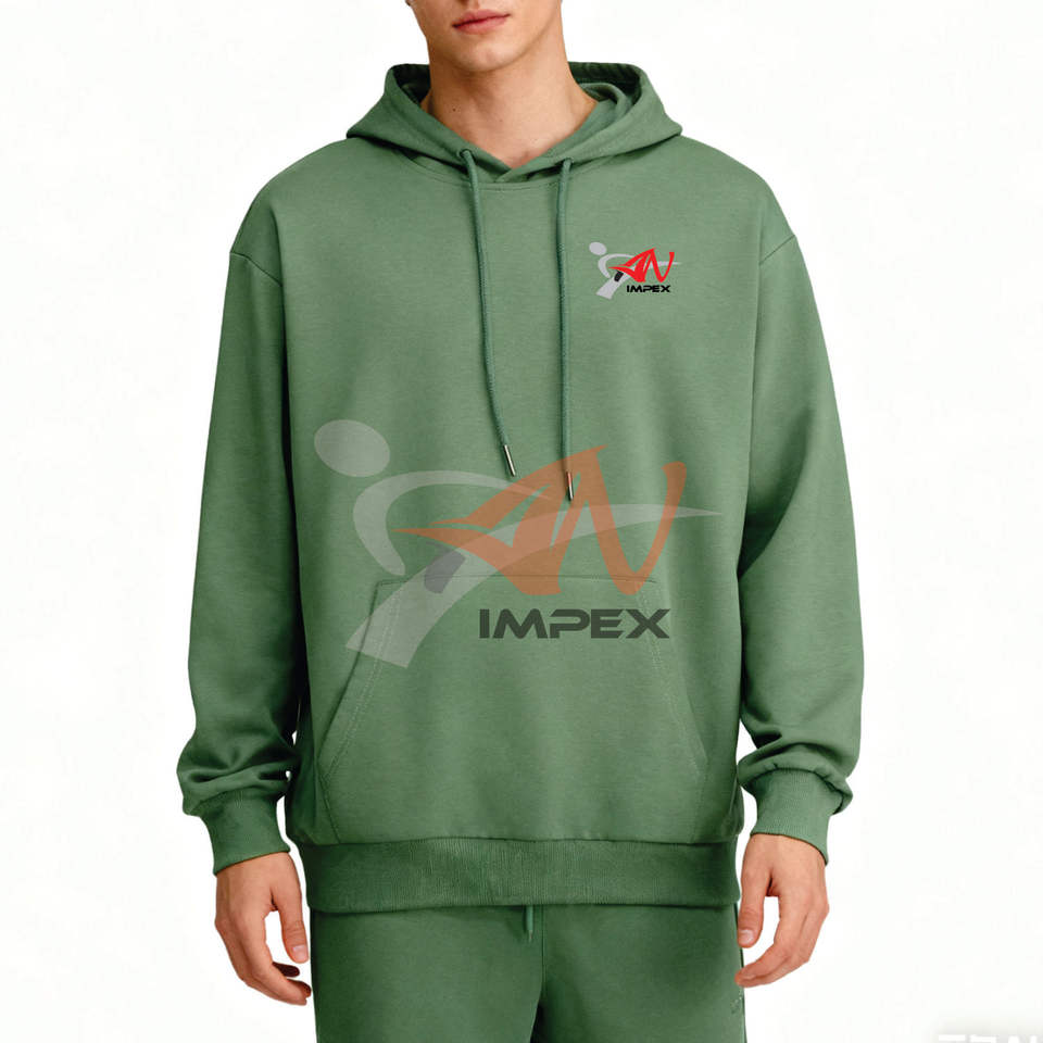 เสื้อฮู้ดดี้ผ้าเจอร์ซีย์ผสมโพลีคอตตอน 180GSM สำหรับผู้ชาย สไตล์สตรีทแวร์ สีพื้น มีกระเป๋า พร้อมโลโก้สั่งทำ MOQ ต่ำ จัดส่งเร็ว โรงงาน OEM