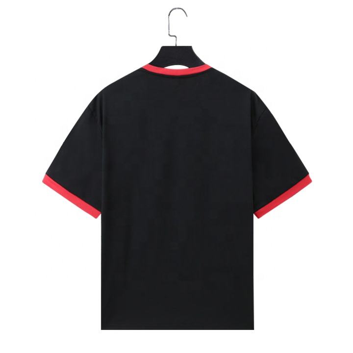 เสื้อยืดคอกลมผู้ชายผ้าโพลีเอสเตอร์แขนสั้นทรงหลวมพิมพ์ลายสีเย็บปะติดแนววินเทจผ้าโพลีเอสเตอร์180กรัม100%
