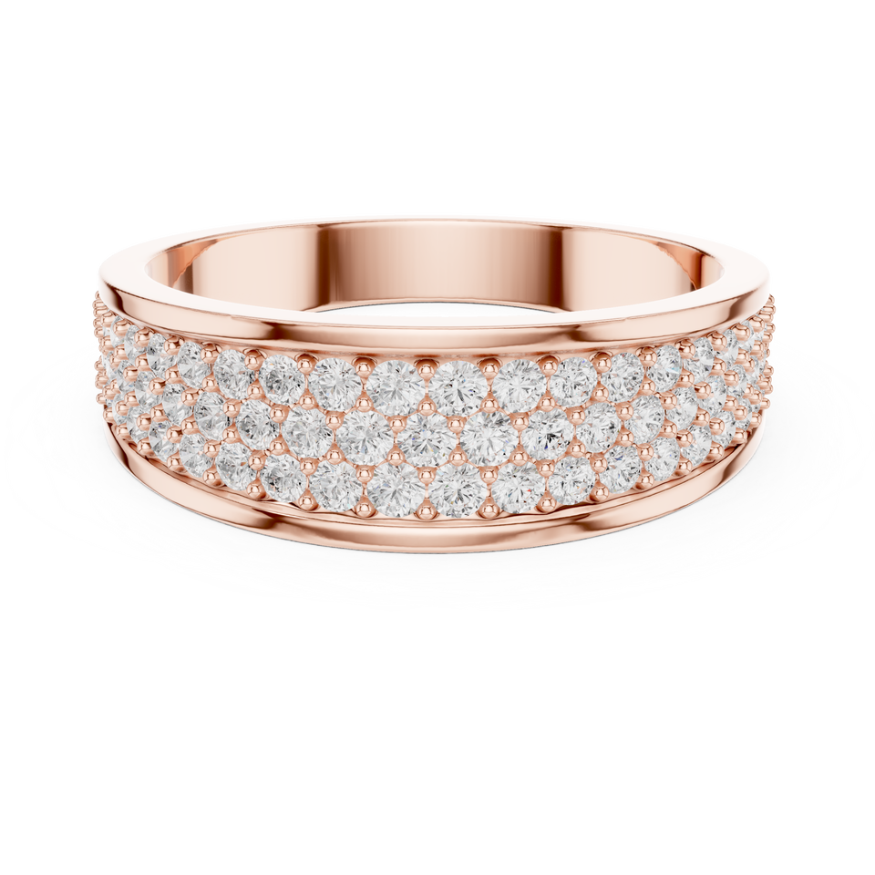 แหวนผู้ชายทองคำโรสโกลด์ 18K ประดับเพชรแล็บโกรว์ รุ่น Monarch Ice Statement Ring พร้อมวงแหวน Prestige Brilliance และ Urban Crown Pave Ring รุ่น Noble Band