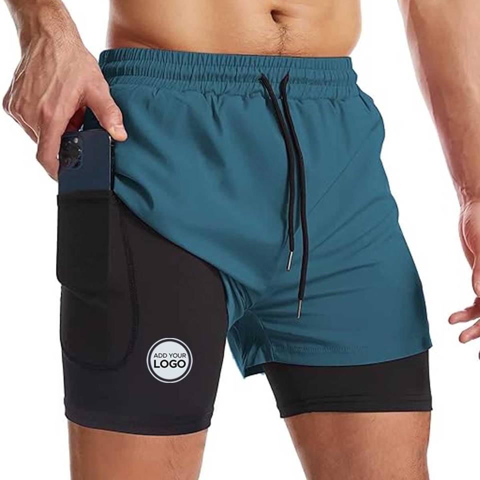 กางเกงวิ่งขาสั้น2 in 1สำหรับผู้ชายกางเกงขาสั้นออกกำลังกายแห้งเร็วเข้ายิมกางเกงวิ่งออกกำลังกายสำหรับผู้ชาย