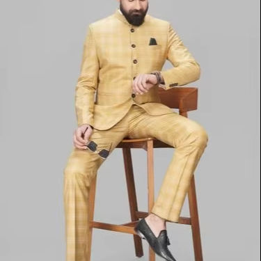 ชุดสูทโพลีเอสเตอร์คอปกลายตามแบบธรรมดาของผู้ชายชุดยาวปกติพร้อมคุณสมบัติระบายอากาศสวมใส่อย่างเป็นทางการ