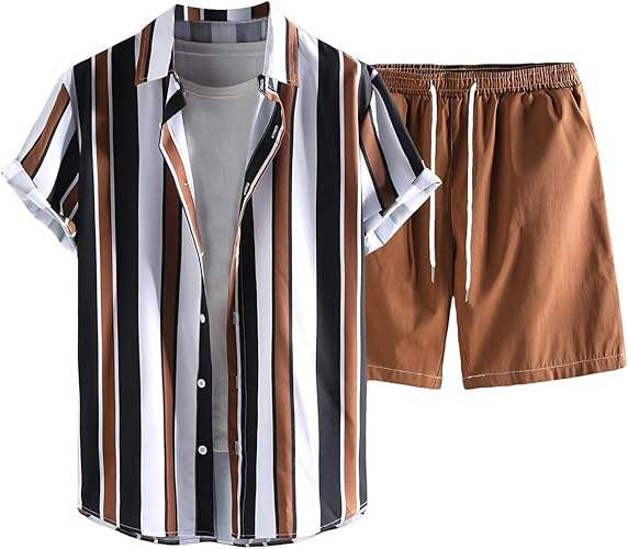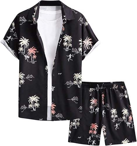 ชุดฮาวายชาย 2 ชิ้น เสื้อเชิ้ตแขนสั้นติดกระดุมและกางเกงขาสั้น ชุดลำลองชายหาด