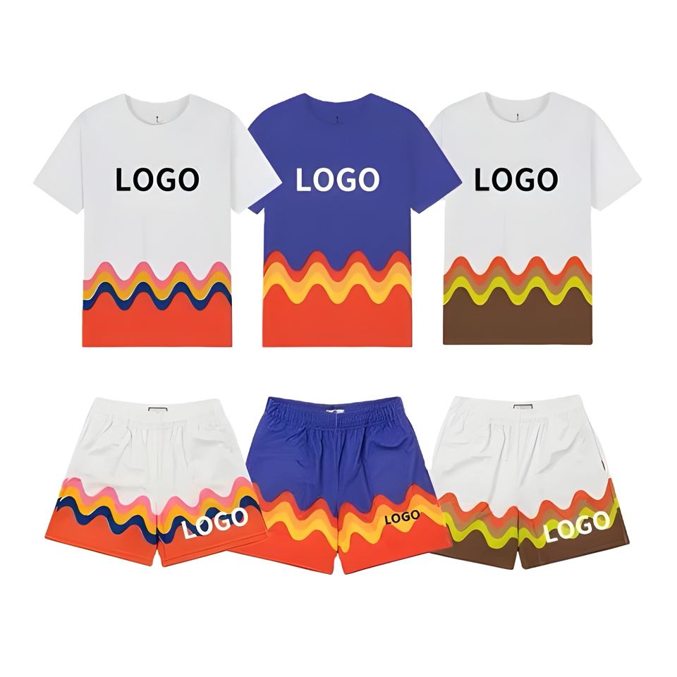 ชุดลำลองแบบยูนิเซ็กซ์ 2 ชิ้น ผ้าฟลีซระบายอากาศ แขนสั้น สำหรับฤดูร้อน ผ้าฝ้าย 100% ชุดวอร์มพิมพ์ลาย ไซส์พลัส สั่งทำได้