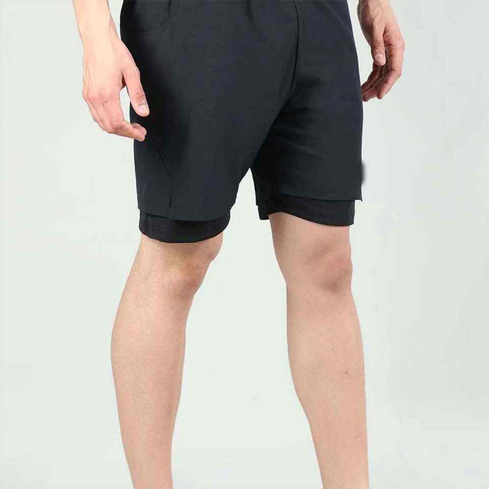 กางเกงขาสั้นออกกำลังกายแบบ2-in-1สำหรับผู้ชายพร้อมซับในแบบลำลองมีเชือกผูกแบบรูดระบายอากาศมีสไตล์สำหรับออกกำลังกายกลางแจ้งกิจกรรม