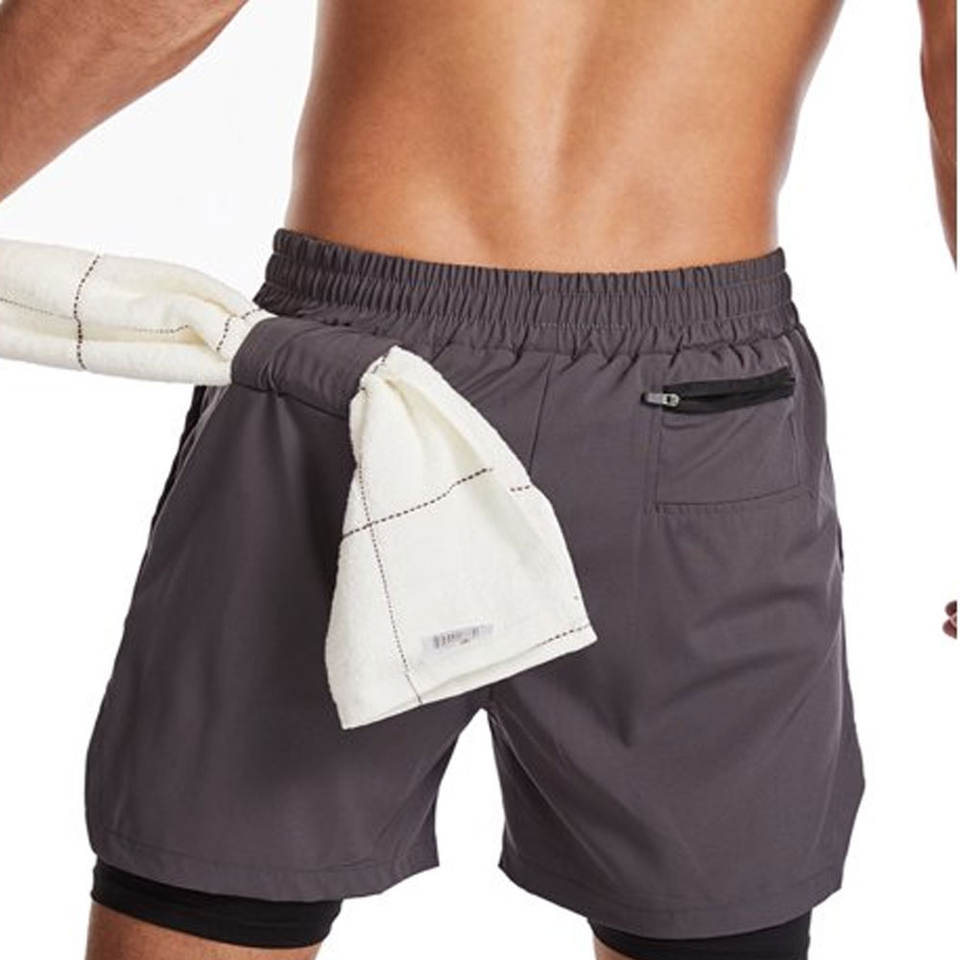 กางเกงขาสั้นวิ่งออกกำลังกายแบบ2 In 1ของผู้ชาย,กางเกงกีฬาขาสั้นแห้งเร็ว7นิ้วพร้อมผ้าซับในสำหรับออกกำลังกายในยิม
