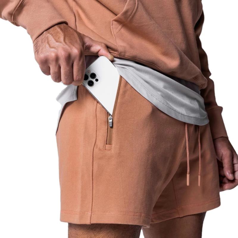 กางเกงขาสั้นวิ่งออกกำลังกายแบบ2-in-1สำหรับผู้ชายระบายอากาศได้ดีแห้งเร็วผ้าโพลีเอสเตอร์/ ผ้าฝ้ายลำลอง