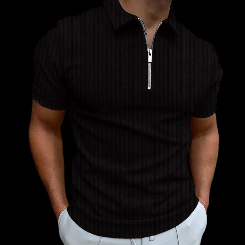 เสื้อโปโลแขนสั้นเข้ารูปลำลองสำหรับผู้ชาย, เสื้อโปโลมีซิปและลายทางเสื้อยืดสไตล์ลำลองฤดูร้อน2025ฤดูร้อน