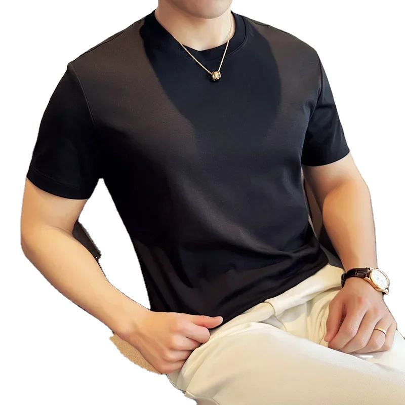 เสื้อยืดผู้ชาย คอลเลคชั่นฤดูร้อน ปี 2025 ผ้าเจอร์ซีย์เนื้อบาง ผสมโพลีเอสเตอร์/คอตตอน คอกลม สำหรับเล่นกีฬา ฟิตเนส วิ่ง หรือใส่ลำลอง