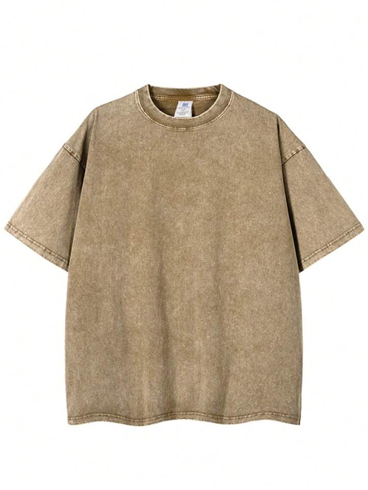 เสื้อยืดแขนสั้นสำหรับผู้ชาย, เสื้อยืดตัวหลวมผ้าฝ้ายแท้สีทึบเสื้อยาว230กรัมทันสมัย