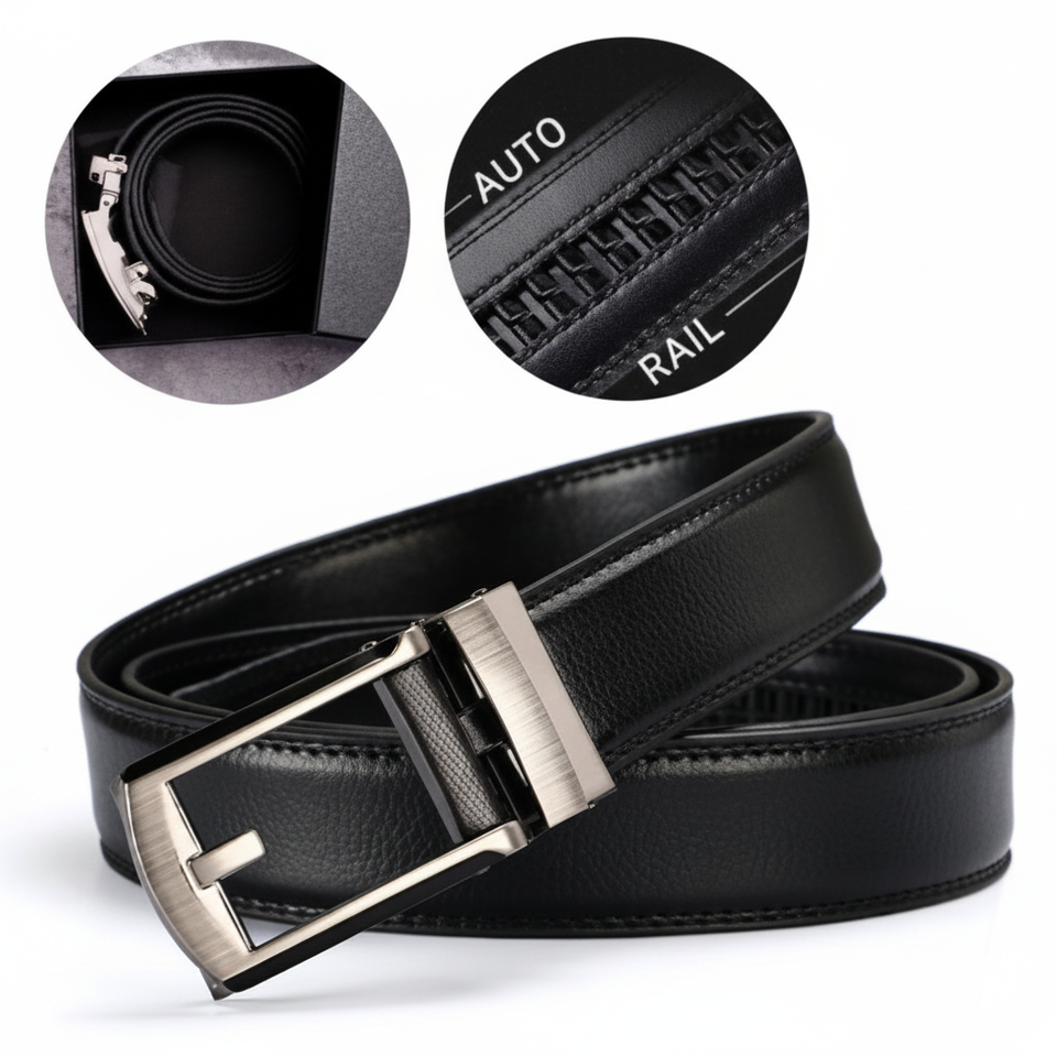 เข็มขัดอัตโนมัติหนังวัวขนาดใหญ่28-45นิ้วสำหรับผู้ชายเข็มขัดคาดเอวแบบคลิกเดียวลำลองพร้อมกล่องของขวัญ