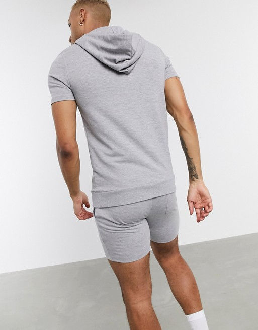 ชุดวอร์มสั้นและมีฮู้ดสำหรับผู้ชายชุดวิ่งจ็อกกิ้งเสื้อ100% ผ้าฟลีซซับใน2ชิ้น