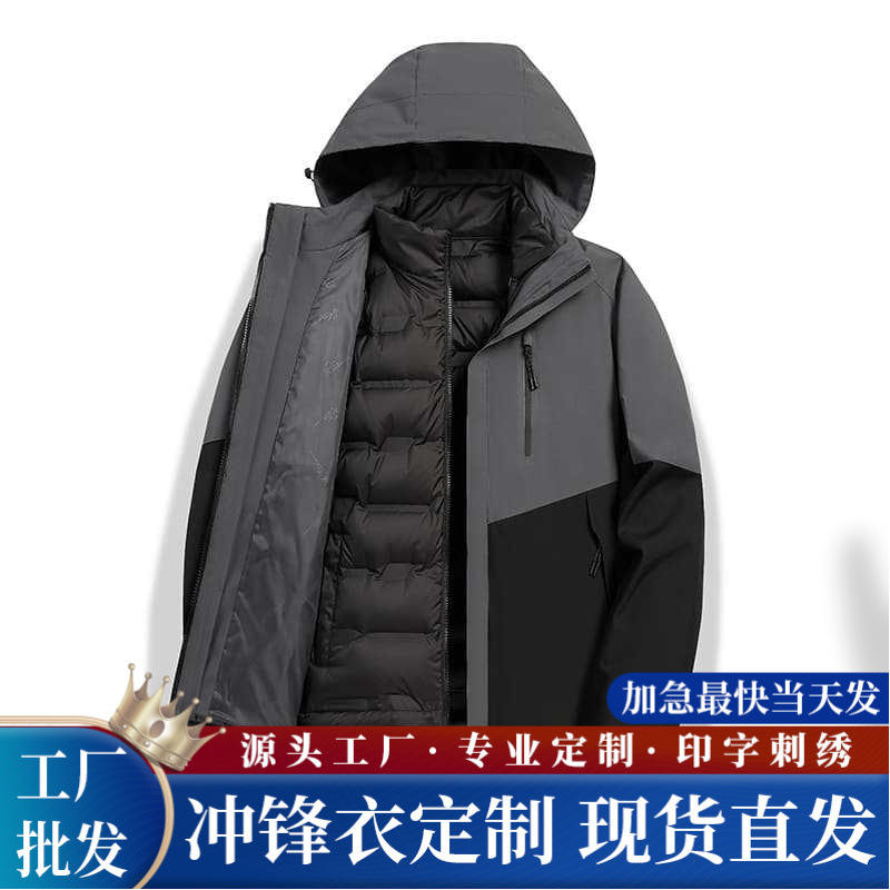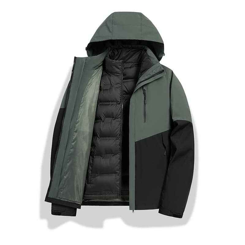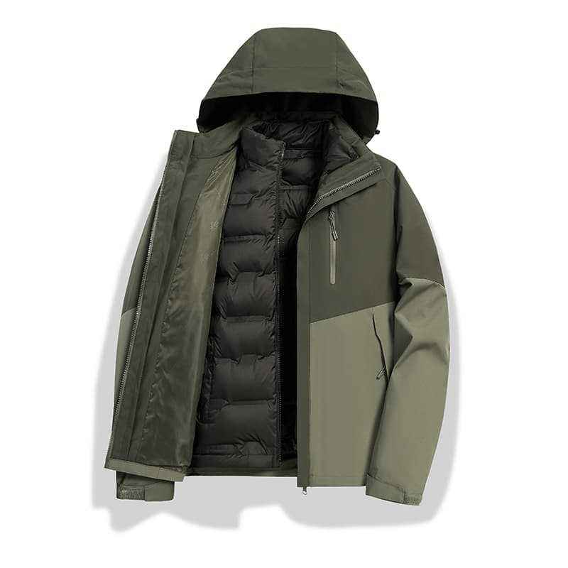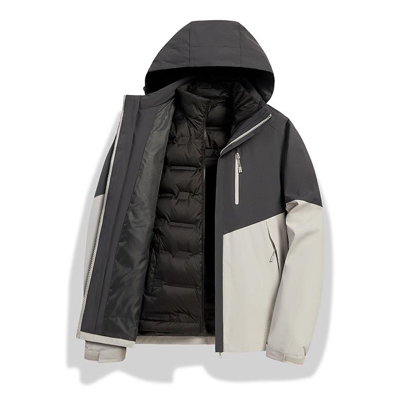 เสื้อแจ็คเก็ตบุนวม 3 ใน 1 สำหรับผู้ชายพร้อมซับในที่ถอดออกได้กันน้ำอุ่นสำหรับฤดูใบไม้ร่วงฤดูหนาวเสื้อแจ๊กเก็ตคอตั้ง