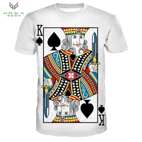 เสื้อยืดแขนสั้นสำหรับผู้ชาย3D พิมพ์ลายไพ่โป๊กเกอร์สีขาวเสื้อถัก100% ยอดนิยมสำหรับฤดูร้อน