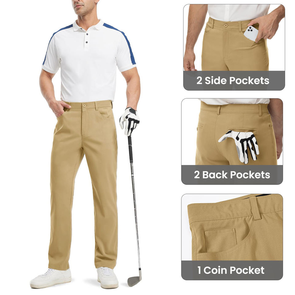 กางเกงกอล์ฟผู้ชายแบบยืดได้ 4 ทิศทาง สีพื้น มีเชือกผูกเอว ระบายอากาศได้ดี ซับเหงื่อ สำหรับผู้ชาย