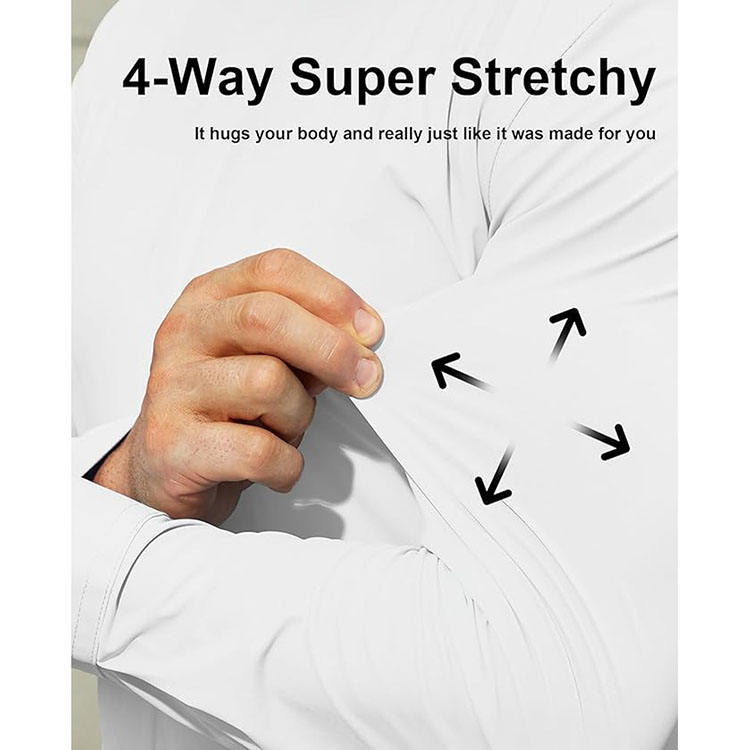 เสื้อเชิ้ตผู้ชายแบบยืดได้ 4 ทิศทาง ปกคอพับได้ แขนยาว ทรงเข้ารูป ติดกระดุม ระบายอากาศได้ดี สวมใส่ได้ทั้งแบบลำลองและเป็นทางการ