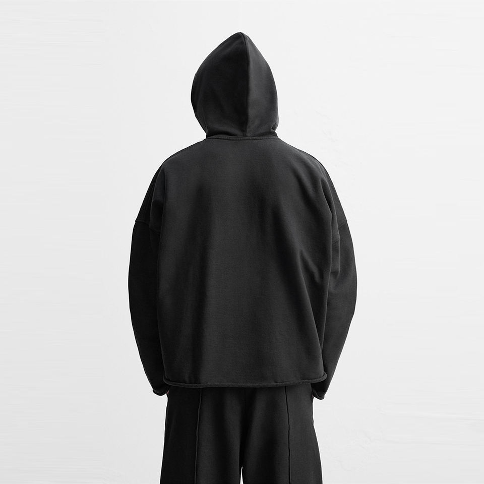 เสื้อฮู้ดผ้าเกล็ดปลาแบบปรับแต่งเองได้สำหรับผู้ชายเสื้อครอปแบบมีซิปสำหรับฤดูหนาวซักด้วยกรด400gsm