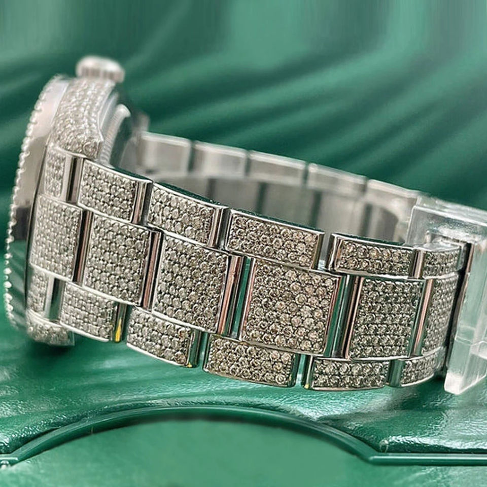 สายสเตนเลสสีฟ้าน้ำแข็ง41มม. ของผู้ชายสายเพชรที่ปลูกในห้องปฏิบัติการ