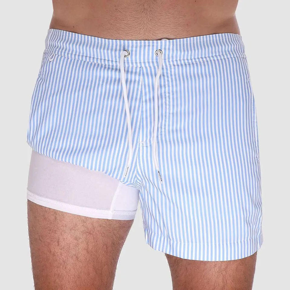 กางเกงขาสั้นลำลองผู้ชาย 5 นิ้ว ผ้าฝรั่งเศสเทอร์รี่ลายทางสั่งทำพิเศษ ระบายอากาศได้ดี ผ้าฝ้ายเนื้อนุ่ม ไม่ยับ สไตล์สตรีทแวร์