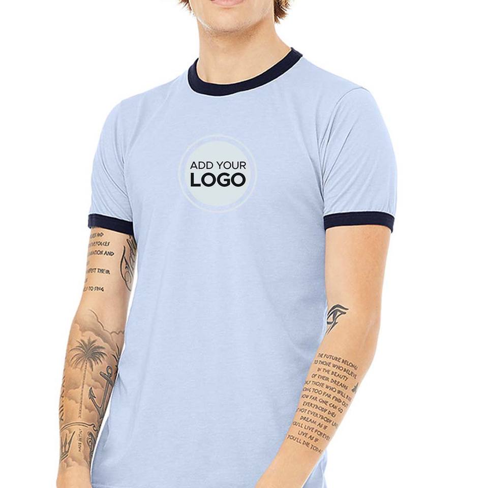 เสื้อยืดผ้าฝ้ายโพลี50/50สำหรับผู้ชายเสื้อยืดโลโก้แบบปรับแต่งได้