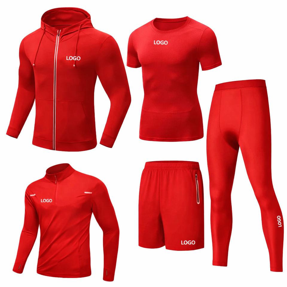 Men's 5PCS Sportswear Set Gym Hoodie T-Shirt Shorts Leggings Running Fitness Tracksuit