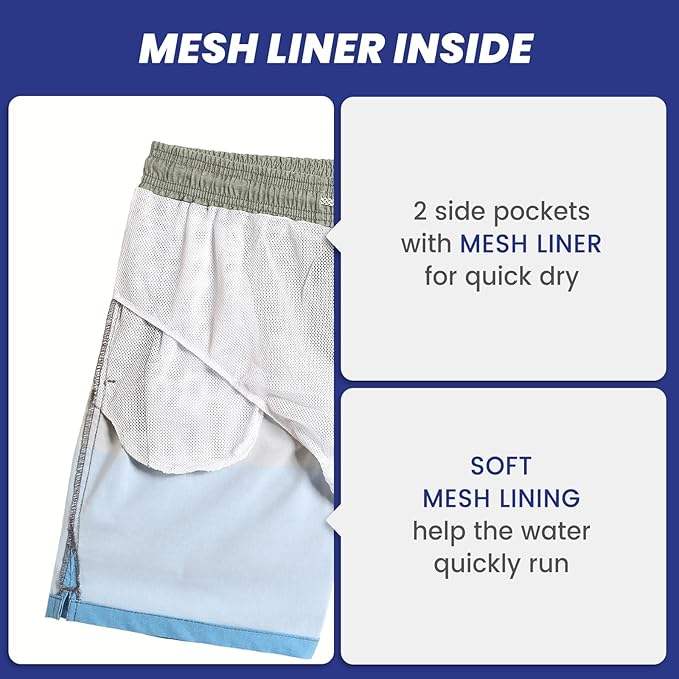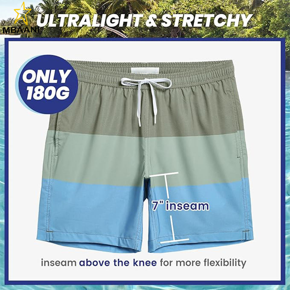 กางเกงว่ายน้ำผู้ชายแบบยืดได้ 7 นิ้ว แห้งเร็ว มีซับในตาข่าย ชุดว่ายน้ำ