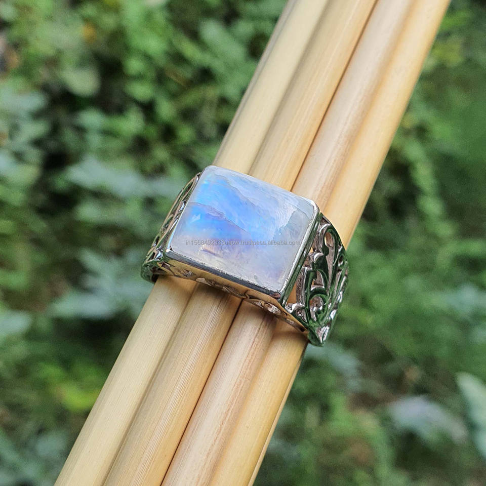 Natural Rainbow Moonstone 925 Sterling Silver Ring