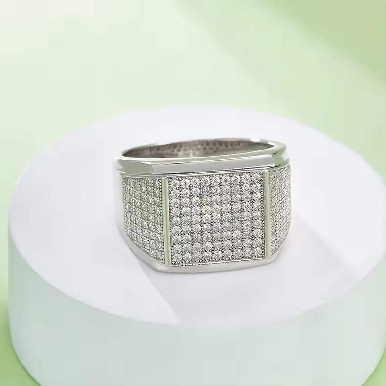 แหวนแต่งงานผู้ชายเงินแท้ 925 ประดับเพชรคิวบิกเซอร์โคเนีย AAAAA 1.55 กะรัต แบบคลาสสิก ตัวเรือนทองคำขาว 18K