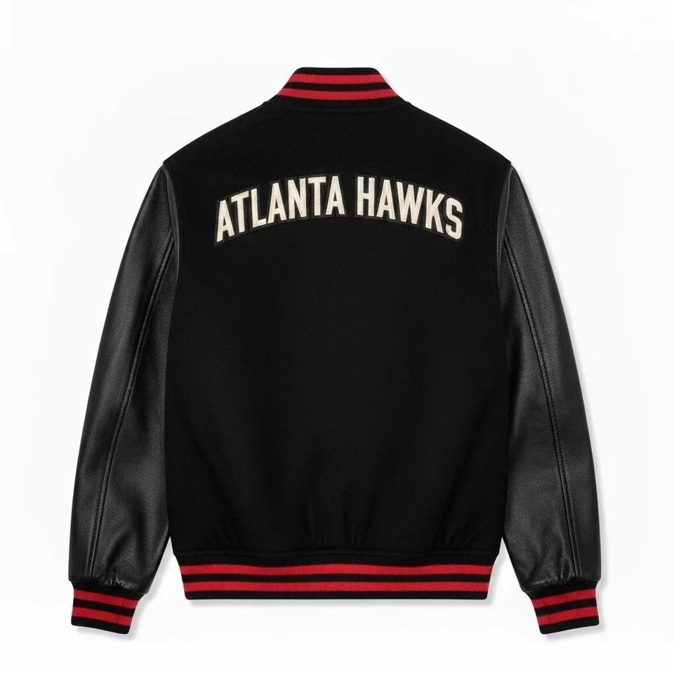 Men's AT HAWKS Black Wool & Sleeves Jacket Letterman Basketball Varsity Jacket