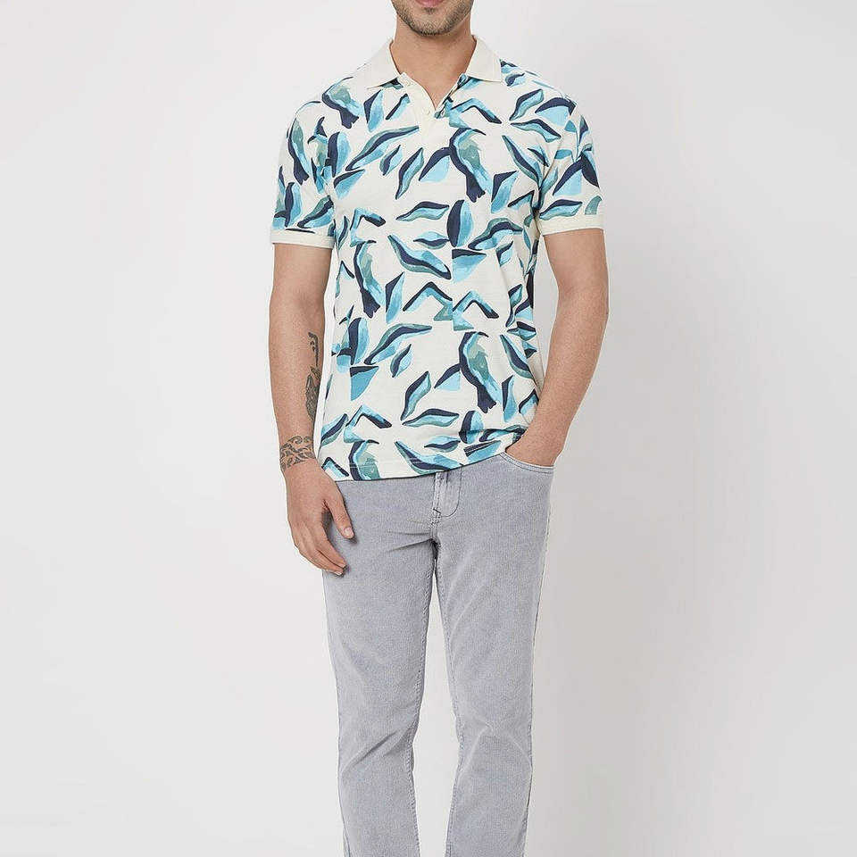 เสื้อโปโลพิมพ์ลายใบไม้สไตล์นามธรรมสำหรับผู้ชาย คอลเลคชั่นฤดูร้อนปี 2026 สีเขียวอมฟ้าและสีกรมท่า สไตล์ทรอปิคอล ชุดลำลองแบบสมาร์ทแคชชวล HD